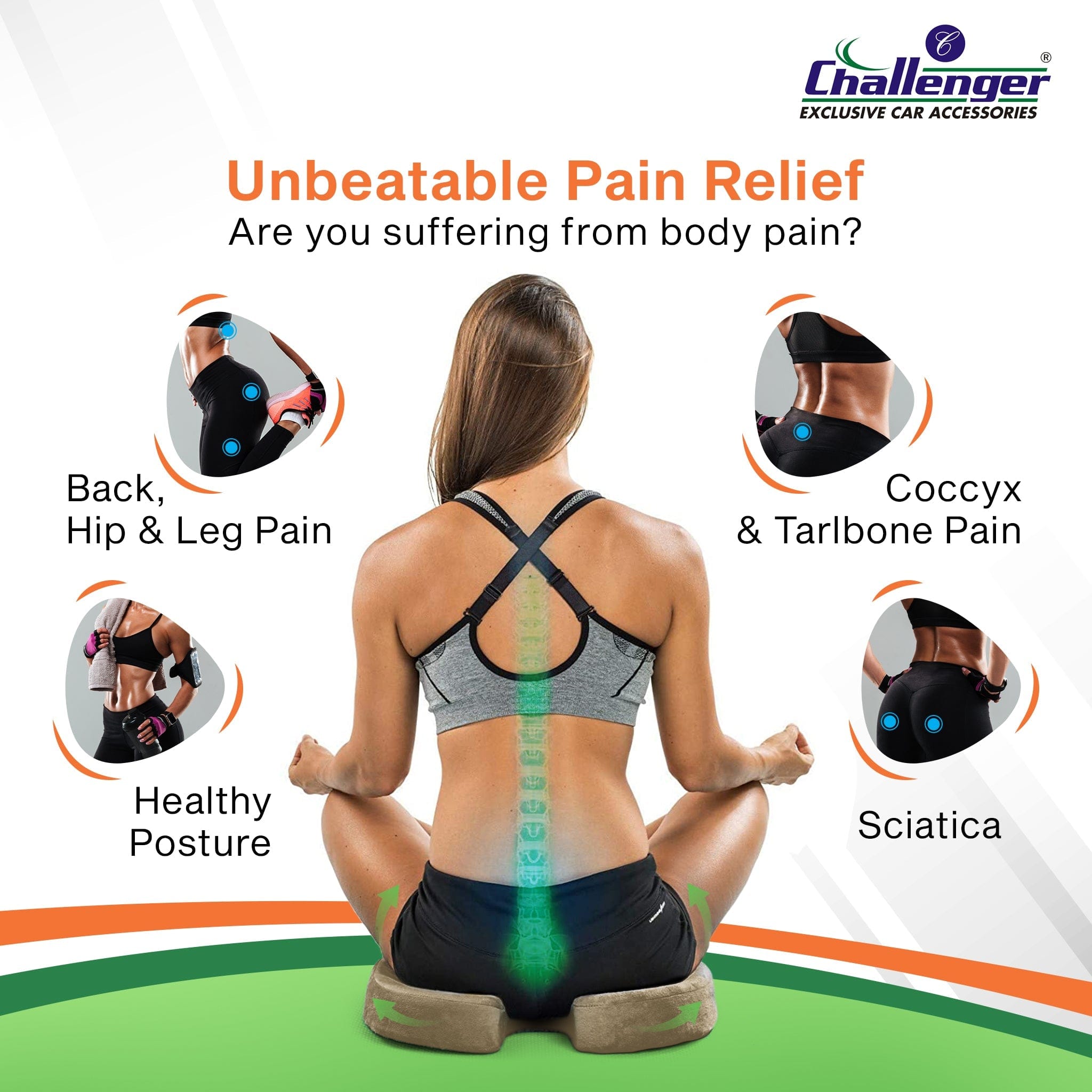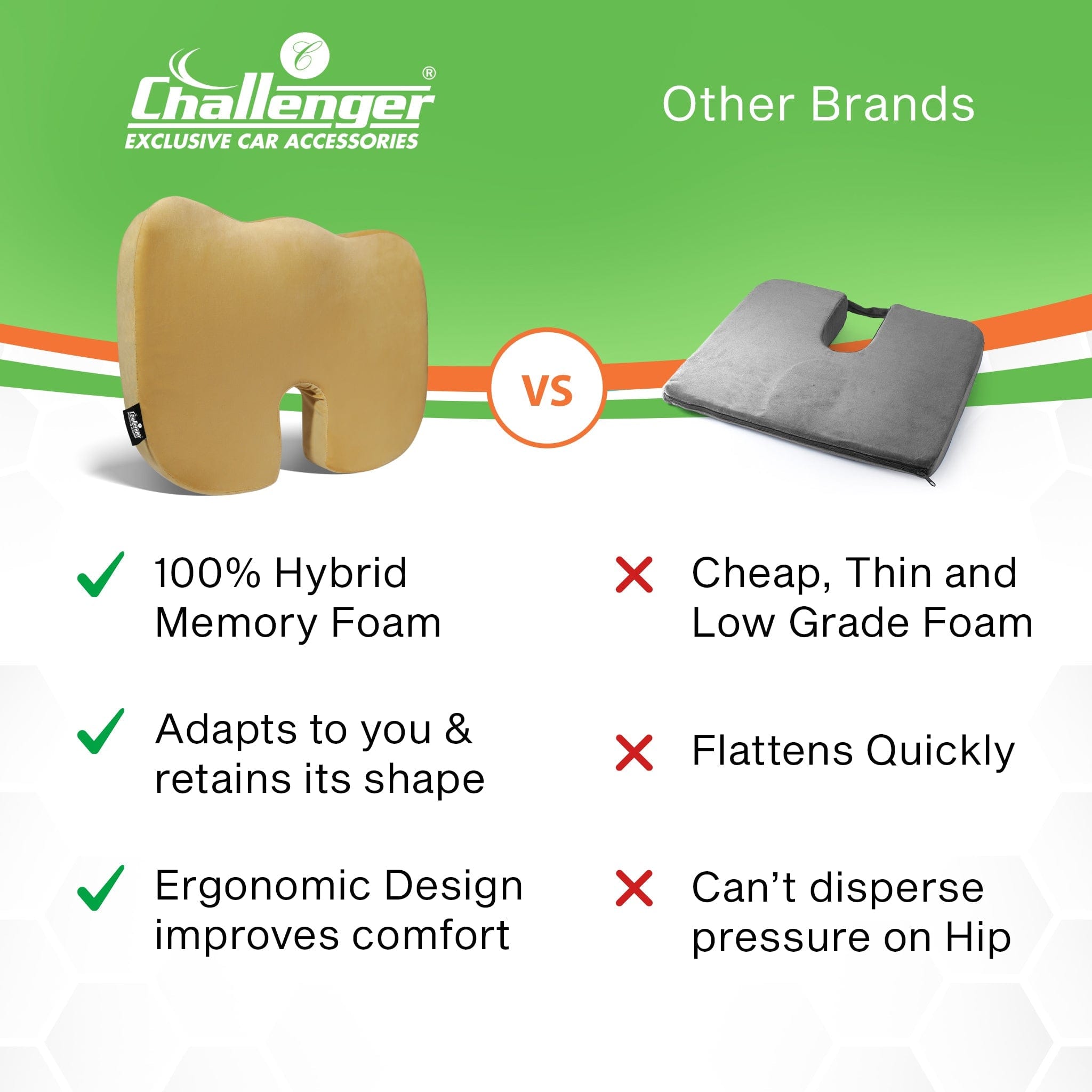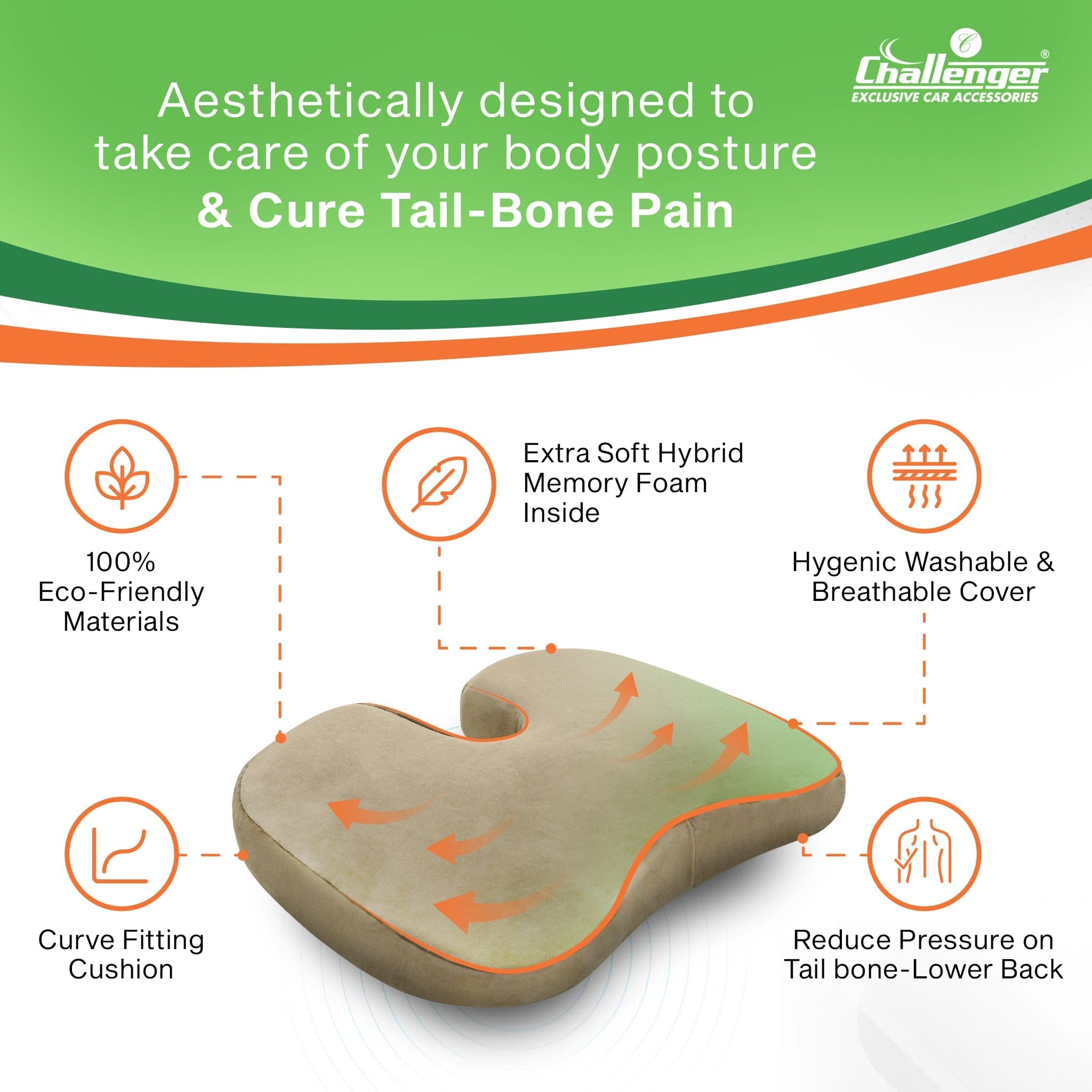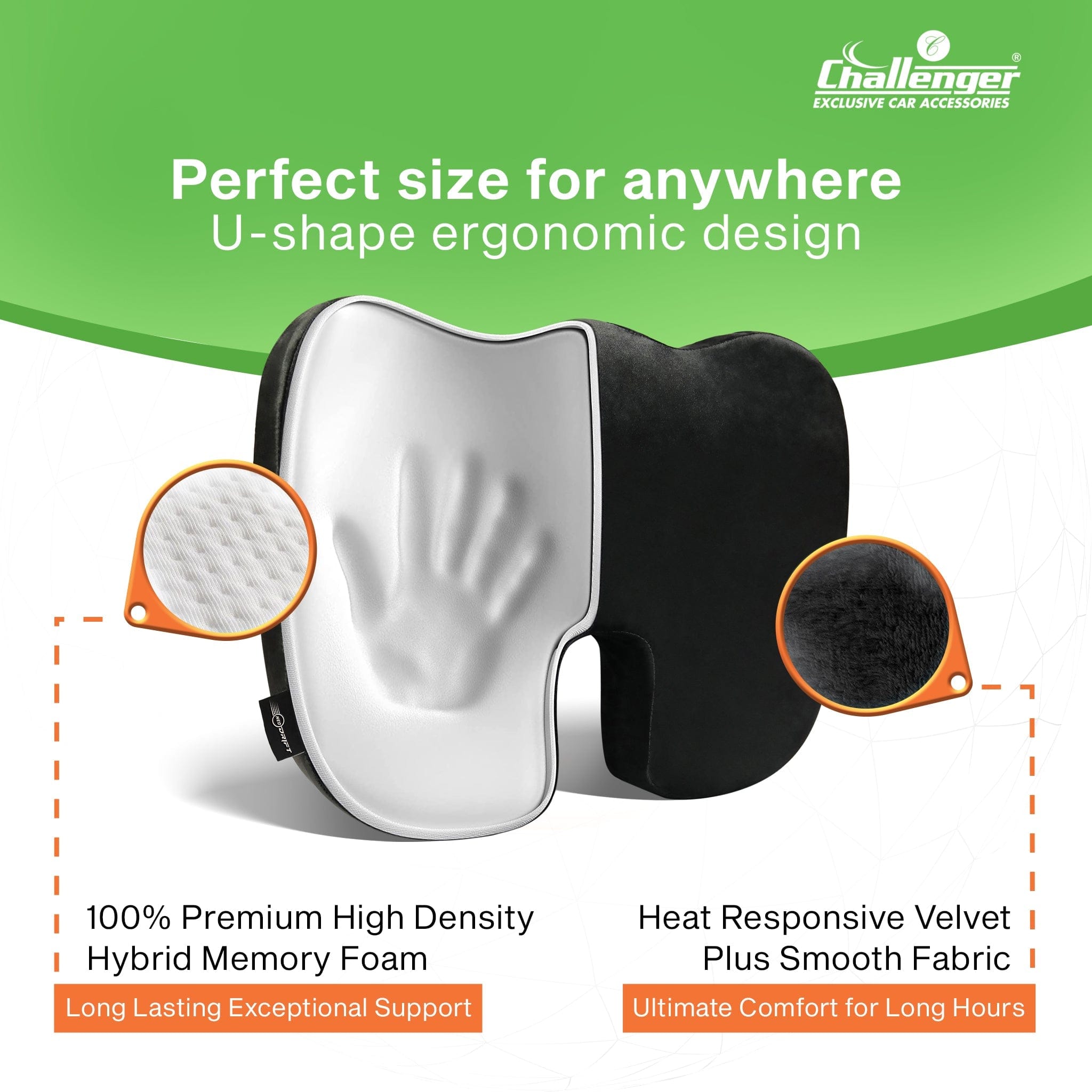 Challenger® ‘Coccyx Seat Cushion’ – Memory Foam Seat Cushion for Coccyx & Back Support